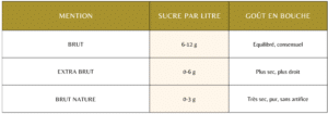 - la mention Brut / Extra Brut / Brut Nature