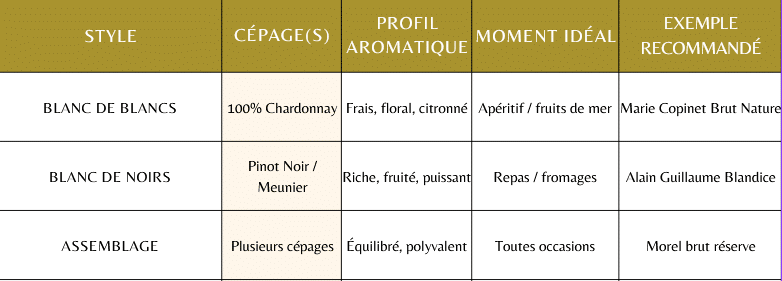 💡 Conseil pratique : pour un mariage, servez un Blanc de Blancs à l’apéritif, puis un Blanc de Noirs au repas.